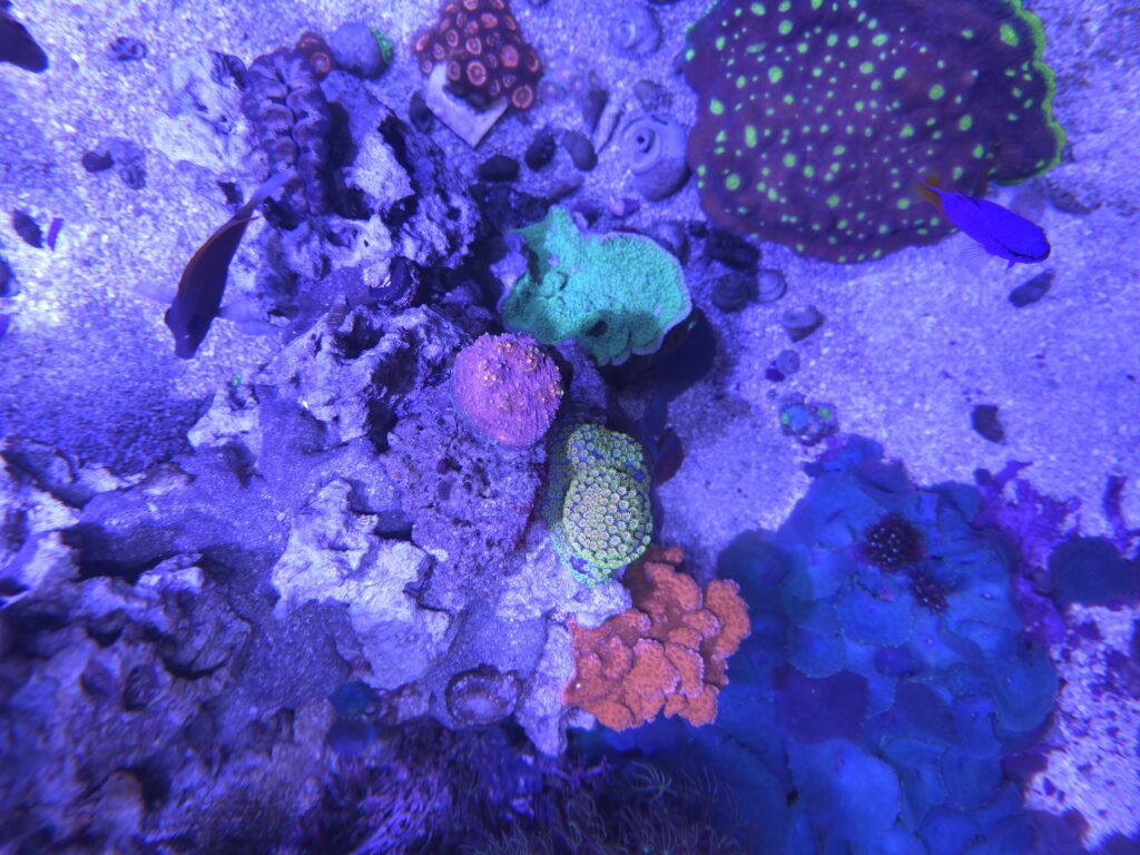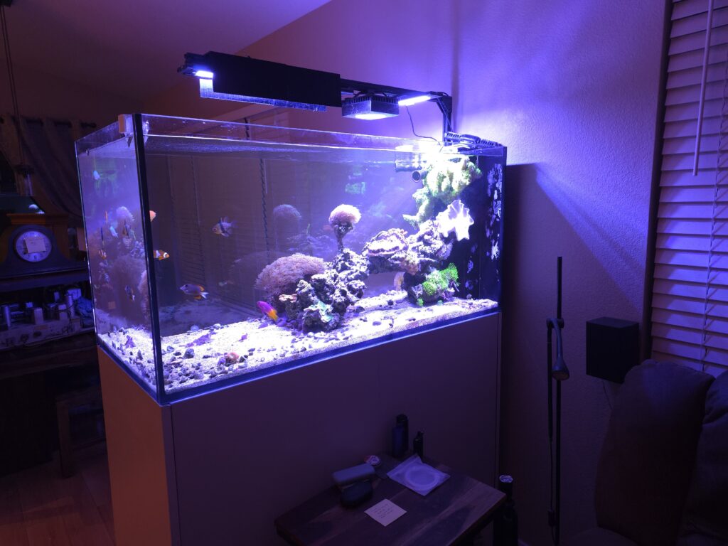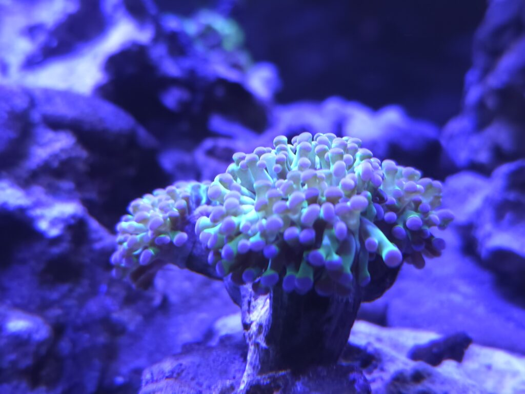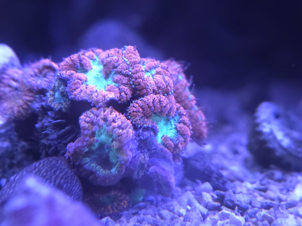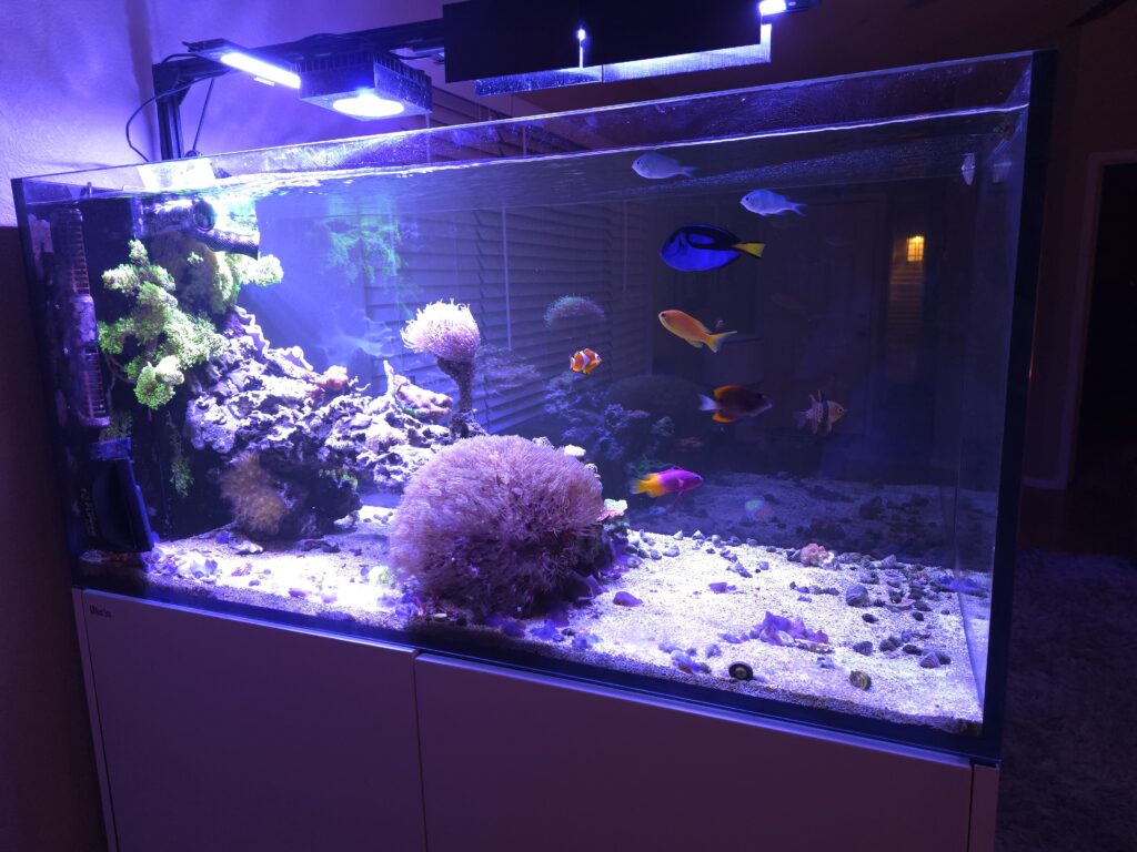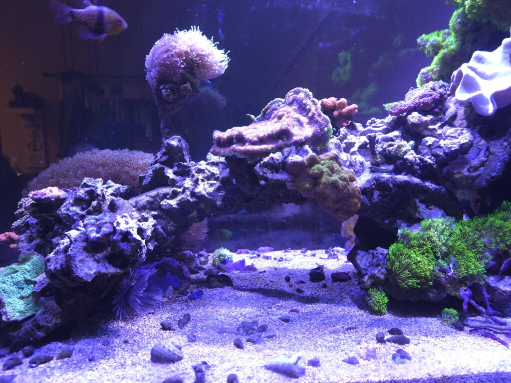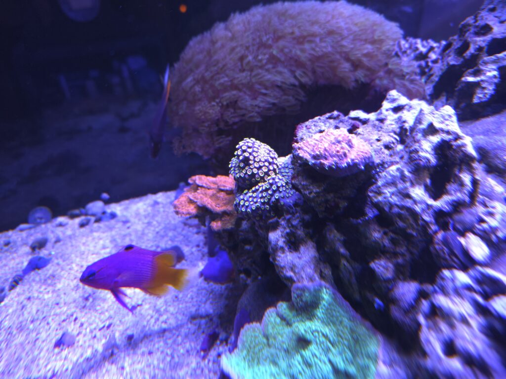 Every single coral in this tank has been grown from a small frag, creating a thriving, stable ecosystem that is both healthy and vibrant. The fish are equally robust. With the exception of a tank-raised Biota yellow tang, all fish were sourced from trusted local stores, Limited Edition Corals and Aquarium Arts. The gorgeous, vibrant blue tang has been with me since it was just the size of a quarter. All fish are healthy eaters and readily accept a variety of foods, including pellets, flakes, and frozen foods. Even the two anthias have been trained to eat anything offered.
