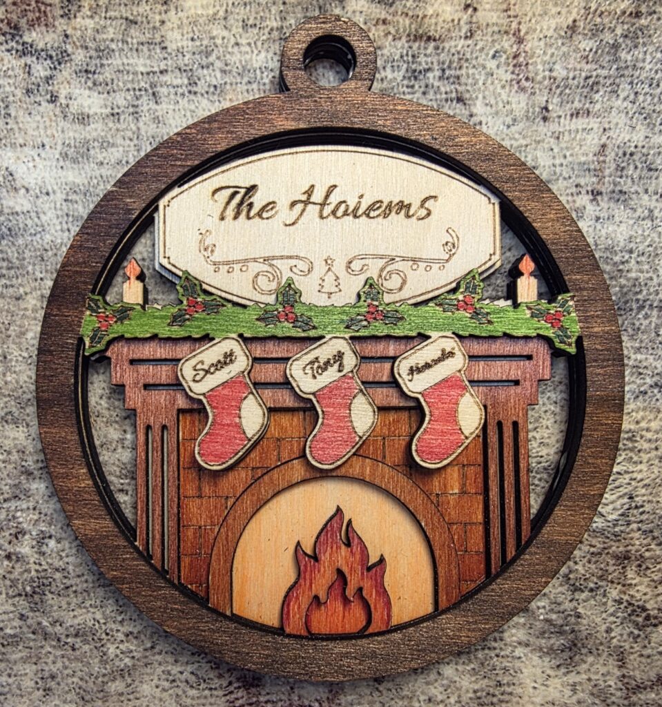 We have a special fireplace and stocking ornament for the entire family. We’ll personalize each stocking with a family member’s name. Due to its size, there is a limit on the number of stockings and the number of letters we can fit on each one.